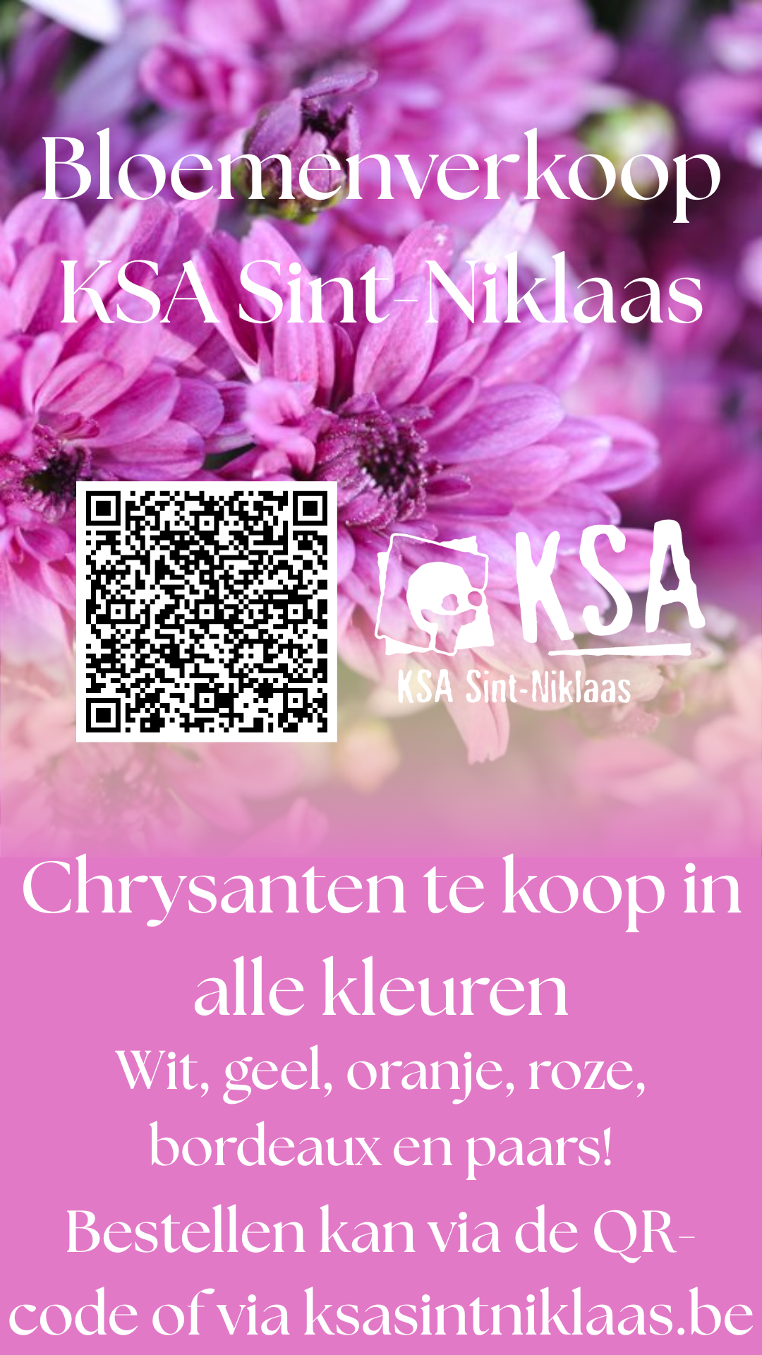 Nu oktober achter de hoek schuilt, zijn we naar jaarlijkse gewoonte terug met onze prachtige bloemenverkoop! We bieden fraaie chrysanten aan in tal van kleuren: wit, geel, oranje, bordeaux, paars en roze. De prijs bedraagt €5 per chrysantje.